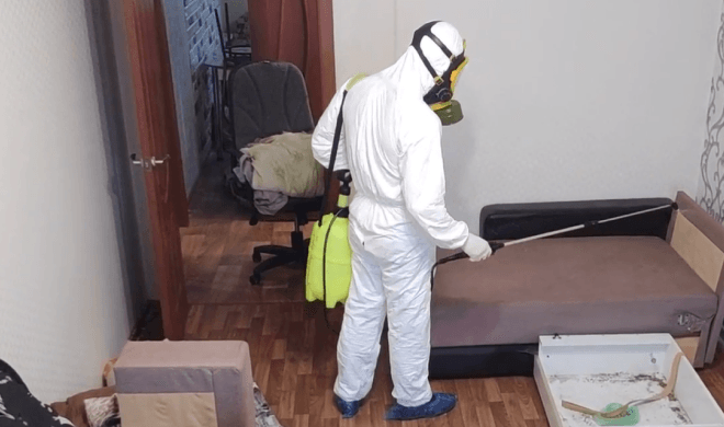 - Перед обработкой помещения проведите влажную уборку, уберите продукты и вещи в плотно закрытые пакеты
